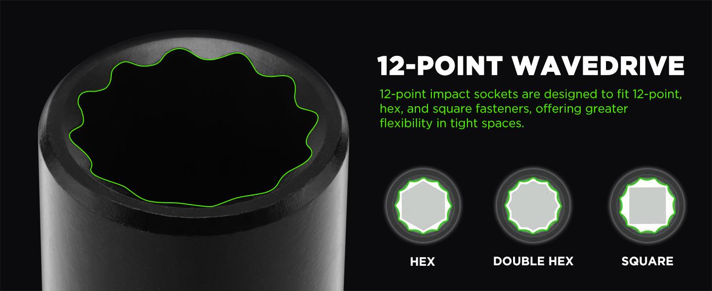 - 【12-POINT DESIGN】12 Point sockets offer double the starting points as 6 point sockets and provide an exact fit for 12-point fasteners. The 12-Point socket set design provides increased strength, but also avoids rounding of rusted or damaged fasteners.
