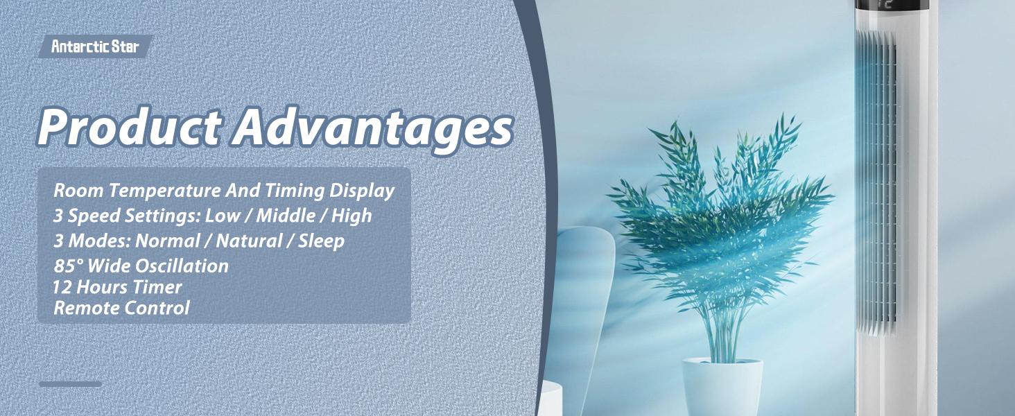 [Instant Airflow & Easy Operation] Experience immediate cooling comfort with this quiet tower fan, delivering powerful airflow in just 3 seconds. Its space-saving design (11.81"L x 11.81"W x 35.83"H) fits seamlessly in any room while providing optimal air circulation.